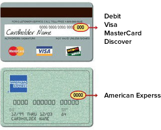 3 or 4 digit security code found on the back of your card; front for AMEX.