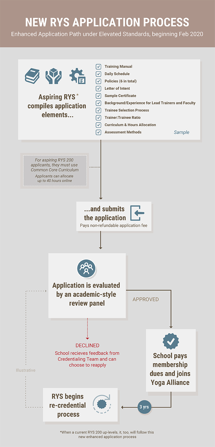 New applicants for any Registered Yoga School (RYS) credential will apply under the strengthened application and review process, providing greater shared accountability to meet or exceed Yoga Alliance's standards.